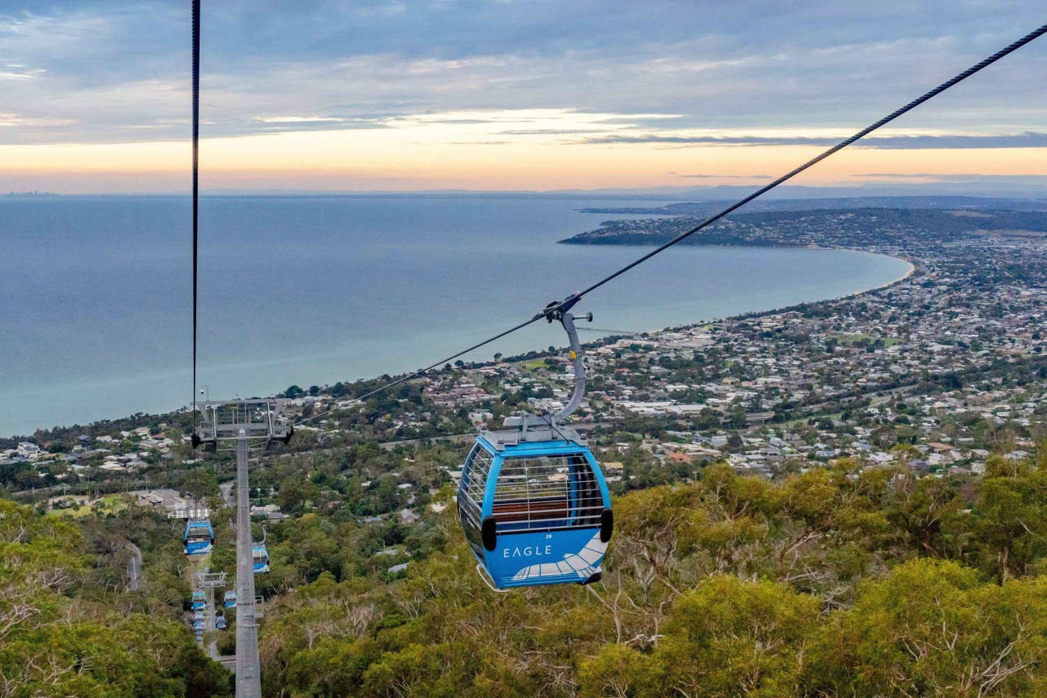 I stedet for Moonlit eller Point Nepean kan du svæve over trætoppene ombord på en moderne gondol og nyde panoramaudsigten over halvøen, Port Phillip Bay og Melbourne-skyline i det fjerne. Stop for at tage ikoniske fotos ved de farvestrålende strandhytter, der ligger langs kysten og tilføjer farve og charme til halvøens kystlandskab.