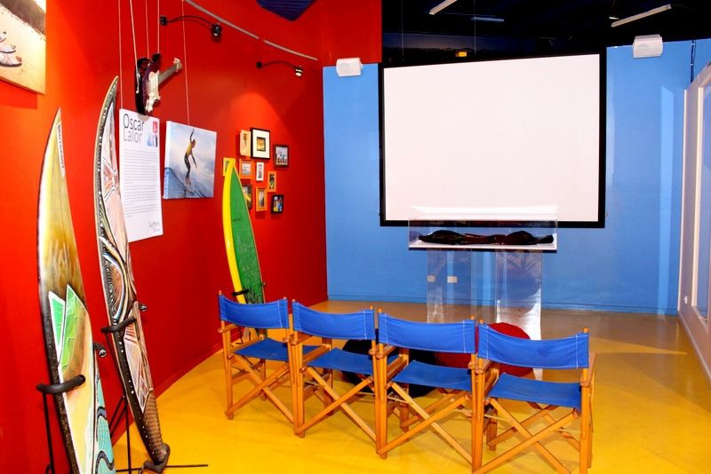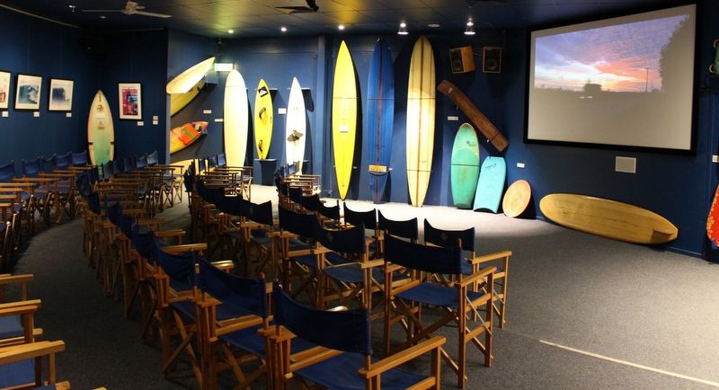 Puedes ver sus biografías montadas en un ejemplo típico de la tabla que usaban. Relájate en el teatro y disfruta de espectaculares imágenes de surfistas en acción mientras estás rodeado de recuerdos de surf vintage y una impresionante variedad de tablas de surf históricas.