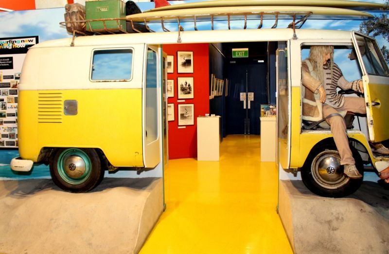 Explora los muchos elementos que conforman la cultura del surf, ropa, películas, música, y camina a través del verdadero surf móvil, la furgoneta VW kombi.